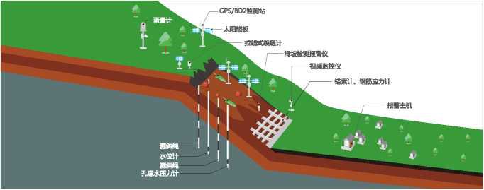 地質(zhì)災(zāi)害監(jiān)測(cè)系統(tǒng):主要對(duì)崩塌、滑坡體、泥石流、地面塌陷、地表沉降等潛在地質(zhì)災(zāi)害隱患點(diǎn)進(jìn)行實(shí)時(shí)在線監(jiān)測(cè),確定變形方向與變形速度,并對(duì)變形趨勢(shì)作出預(yù)測(cè),判斷監(jiān)測(cè)對(duì)象的穩(wěn)定狀態(tài),預(yù)警失穩(wěn)征兆,預(yù)防災(zāi)害事故的發(fā)生,為防災(zāi)減災(zāi)提供專業(yè)技術(shù)支撐和科學(xué)依據(jù),提高地質(zhì)災(zāi)害預(yù)警預(yù)報(bào)能力和應(yīng)急救災(zāi)的快速反應(yīng)能力。