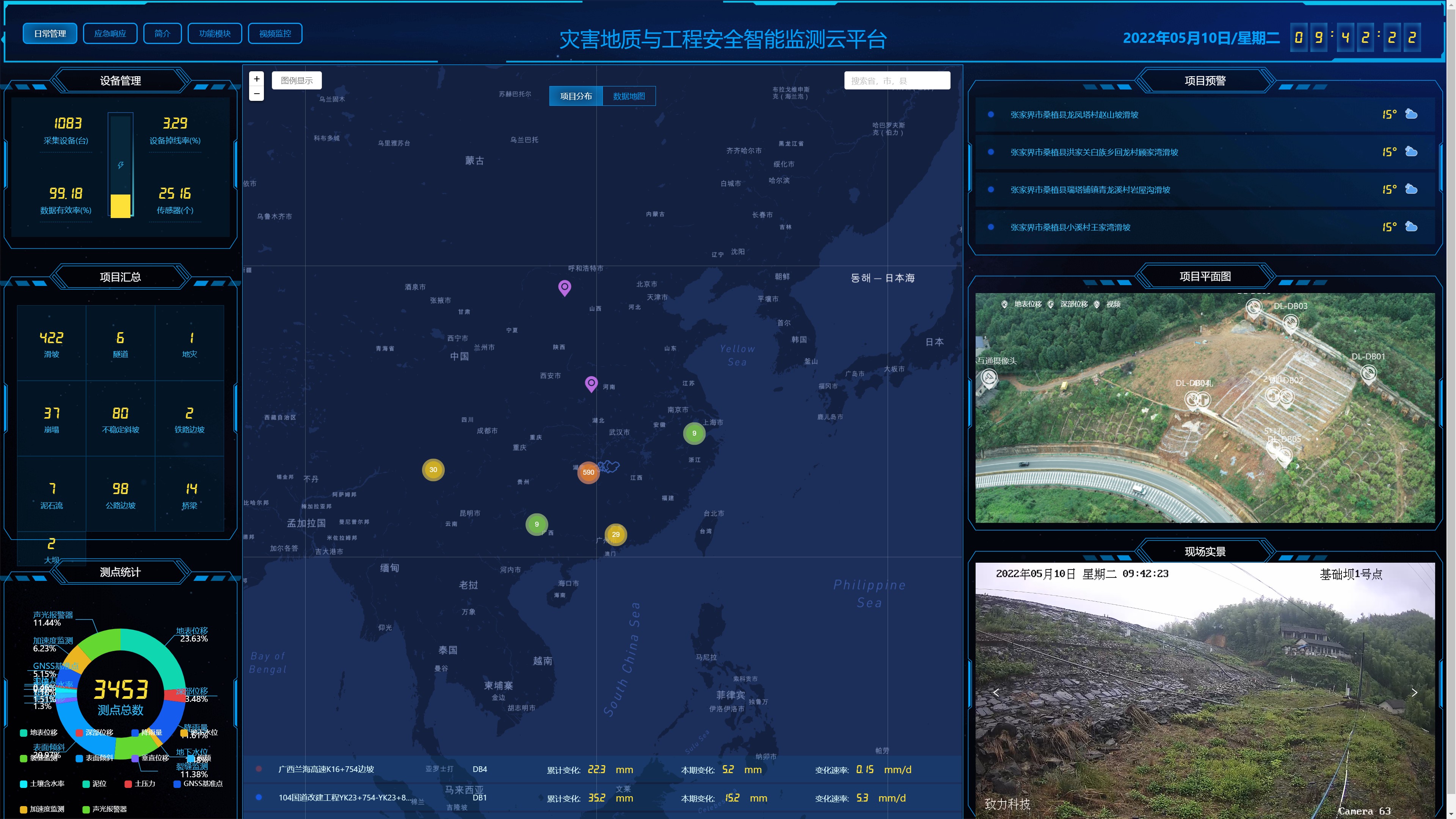 目前,致力云平臺已在全國布設(shè)監(jiān)測點3453個,覆蓋了全國20余省的400余個邊坡、橋梁、隧道、基坑、礦山、大壩、尾礦庫、棄土場等,累計發(fā)布準(zhǔn)確有效預(yù)警信息100余次,多次成功預(yù)警項目險情,科學(xué)指導(dǎo)應(yīng)急處治,有力保障了人民生命財產(chǎn)和社會安全。