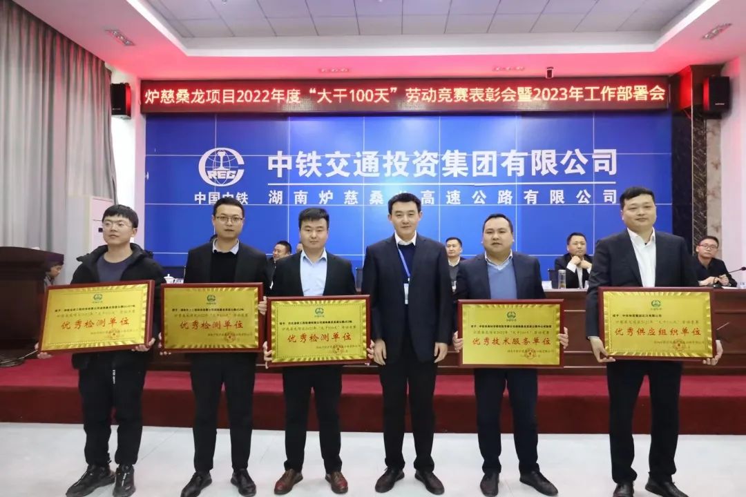近日,從湖南中鐵爐慈桑龍高速公路有限公司傳來喜訊,湖南致力工程科技有限公司桑龍高速公路JC2標(biāo)項(xiàng)目部榮獲爐慈桑龍項(xiàng)目2022年度大干“100天”勞動(dòng)競(jìng)賽“優(yōu)秀檢測(cè)單位”稱號(hào)!