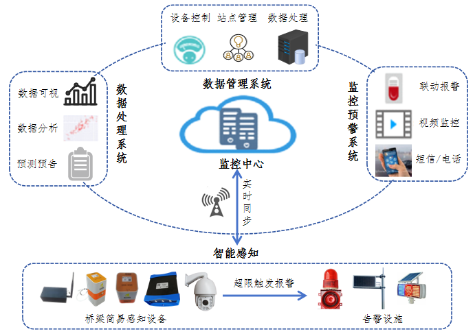 橋梁長期經(jīng)受自然環(huán)境侵蝕和繁重交通荷載的雙重考驗,結構裂縫、鋼筋銹蝕、支座的老化、變形、墩臺沉降等病害問題時有發(fā)生。及時準確地識別高速公路運營橋梁的病害,是保障橋梁安全、實施預防性養(yǎng)護的前提條件。然而,傳統(tǒng)以橋梁總體技術狀況等級或構件評定標度作為預防性養(yǎng)護介入時機的依據(jù),存在著明顯的局限性。養(yǎng)護等級為 Ⅱ、Ⅲ 級的橋梁,其定期檢查周期通常為3年,兩次定檢之間較長的空窗期,使得及時察覺病害變得極為困難,容易錯過主動預防性養(yǎng)護的最佳時機。對于一些特殊病害橋梁,比如高墩偏位、支座位移、墩梁相對位移過大或裂縫發(fā)育較快的橋梁,實時監(jiān)測其狀態(tài)變化并及時預警,是判斷是否進行預防性養(yǎng)護的不可或缺的前提條件。在此背景下,致力科技自主研發(fā)了成套橋梁簡易感知報警設備、致力云安全監(jiān)測預警云平臺及預警體系,為橋梁病害識別與預防性養(yǎng)護決策帶來了智能化技術解決方案。